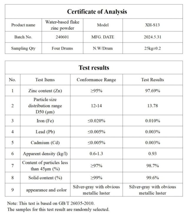 Цинк высокой чистоты/Правильная форма/Одинаковый диаметр — соотношение толщины; Антикоррозионное покрытие, изготовленное из цинковой пасты, обладает хорошими показателями коррозионной стойкости, отсутствием кислородной хрупкости, более высокой проницаемостью, более высокой адгезией, более высокими антифрикционными свойствами, более высокой стойкостью к атмосферным воздействиям, более высокой химической стойкостью и стабильностью, а также является экологически чистым и не загрязняет окружающую среду. Более того, при том же эффекте солевого тумана/антикоррозионности оно снижает расход цинка и экономит затраты.